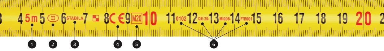 Les mètres à ruban STABILA sont produits selon les normes de qualité les plus strictes. Les rubans satisfont à la directive MID valable pour l'Europe, portent le marquage CE et métrologique et ont une attestation d'examen CE de type. La graduation est toujours en grands chiffres - les dizaines rouges servant à s'orienter rapidement lors de la lecture.