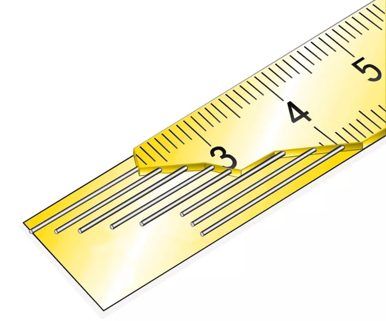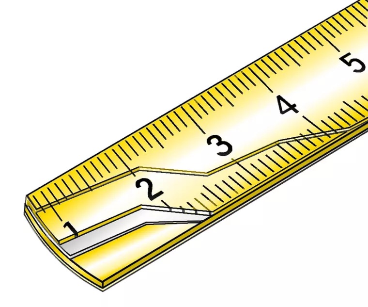 Pour les mètres à ruban avec l'anneau en plastique, il est possible d'ajouter simplement à la longueur mesurée : 2 cm entre le point zéro et l'encoche du clou, 5 cm entre le point zéro et le début de l'anneau.